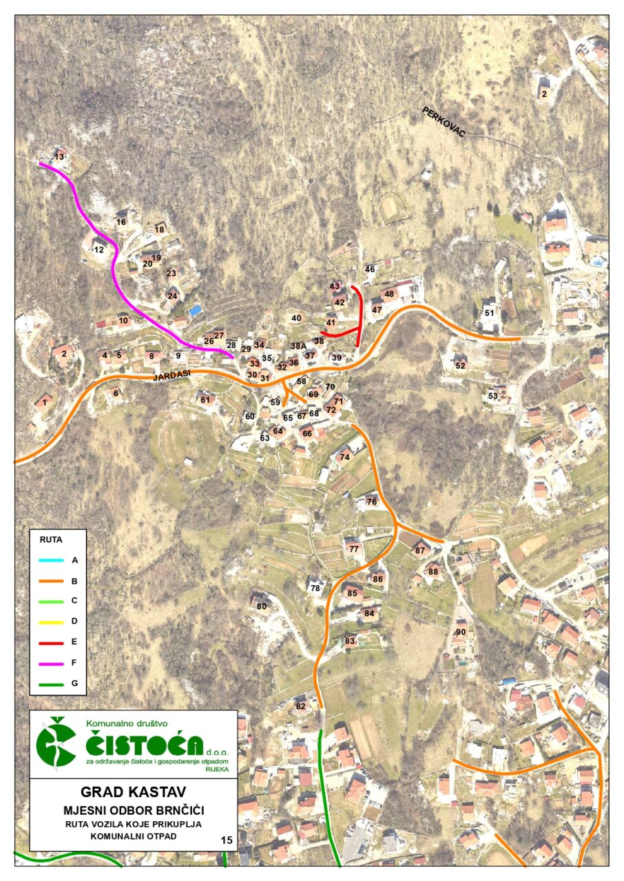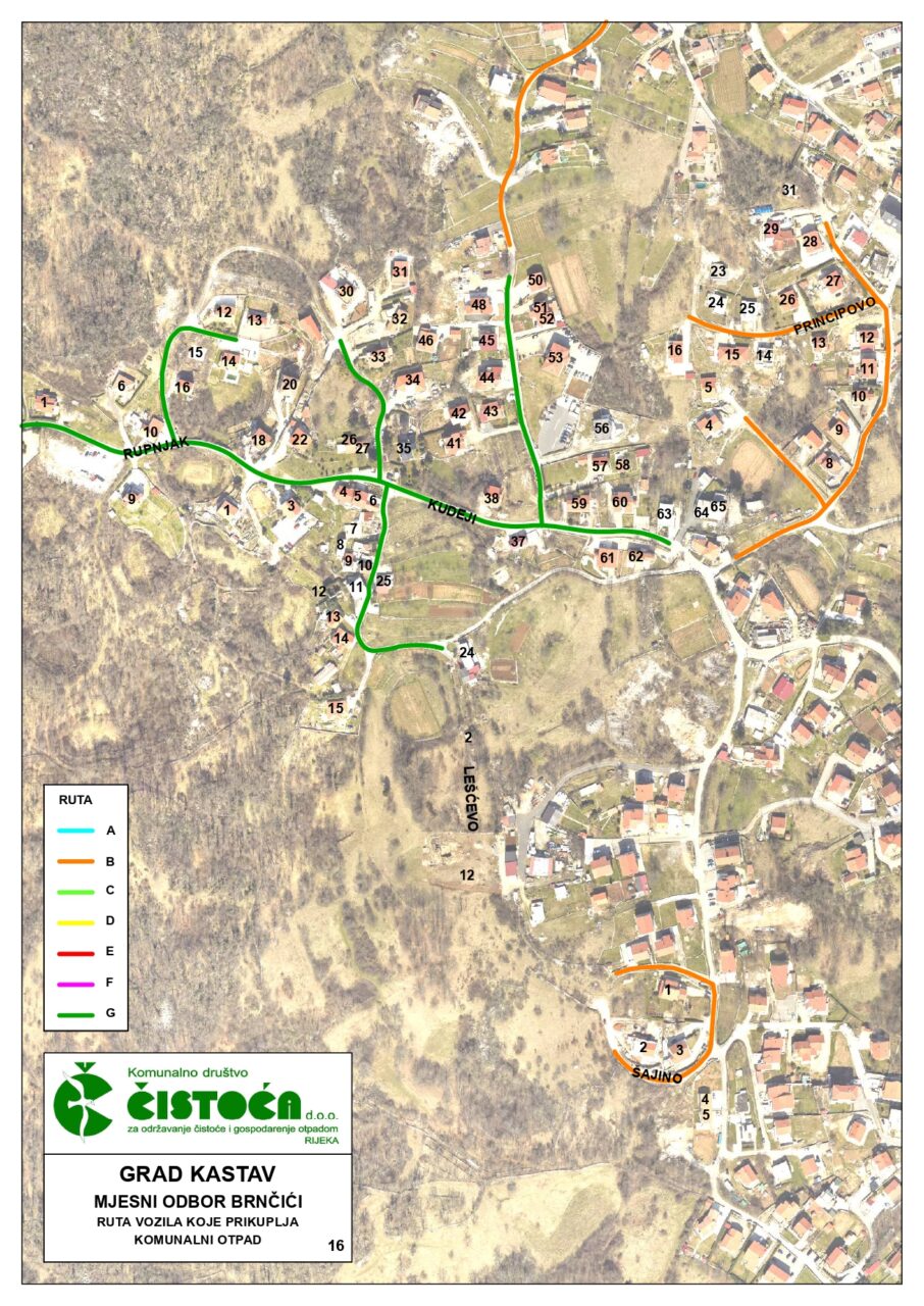 Pražnjenje zelenih, plavih i žutih spremnika obavlja se sukladno rasporedu i karti ruta u nastavku: